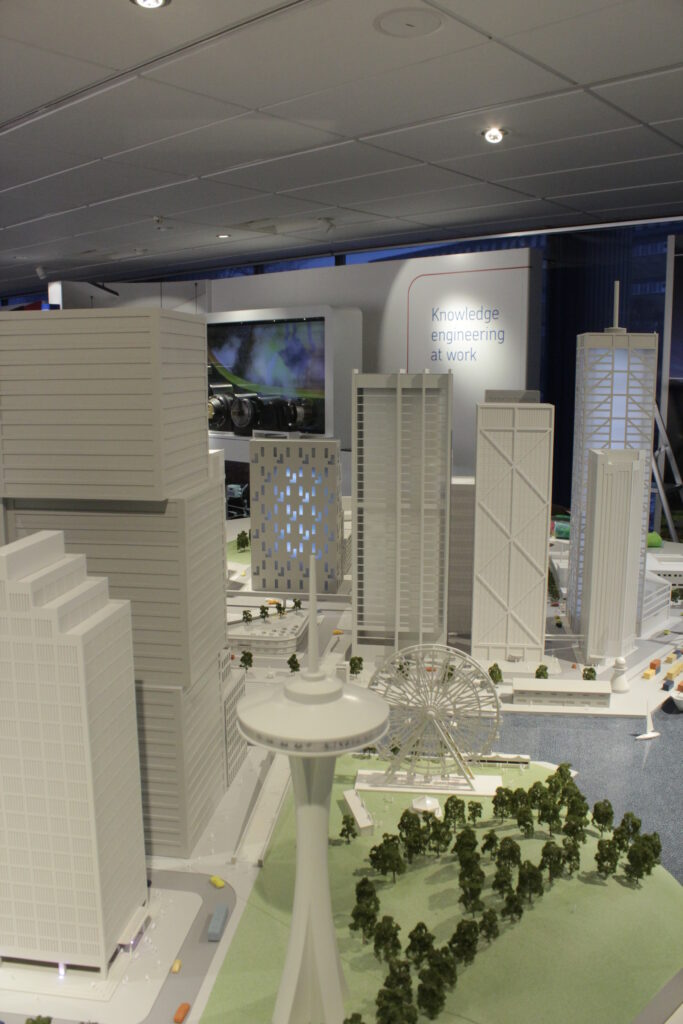 Den stora modellen är en fiktiv stad med styrd belysning och rörliga detaljer. Allting är DMX-styrt och konfigurerat