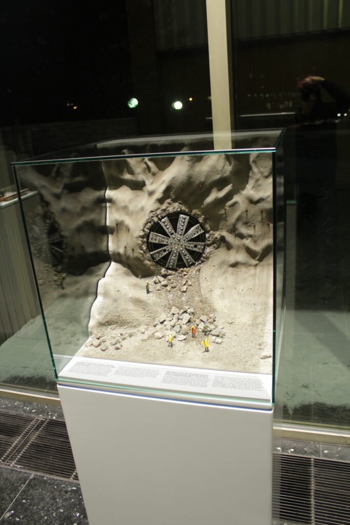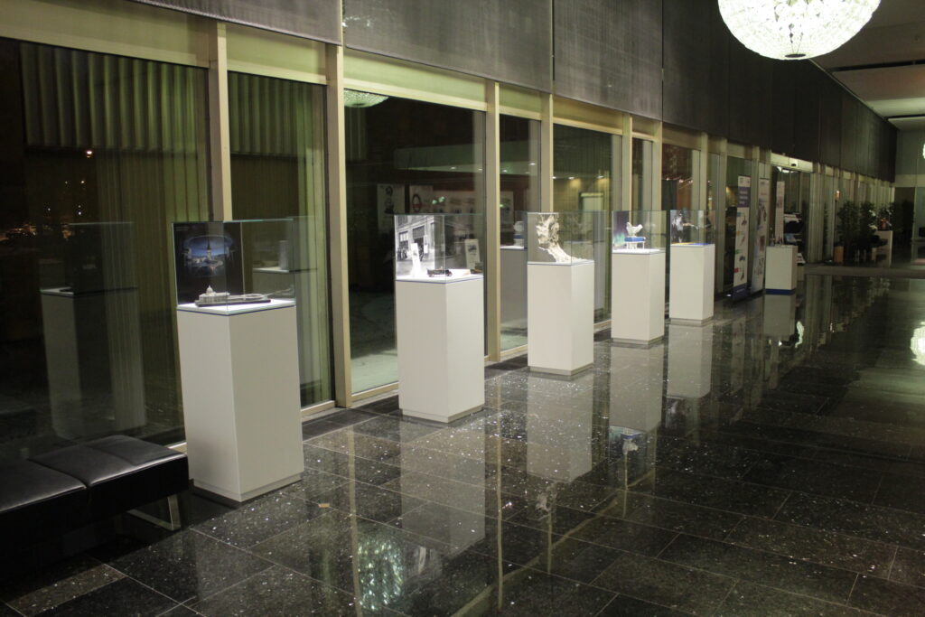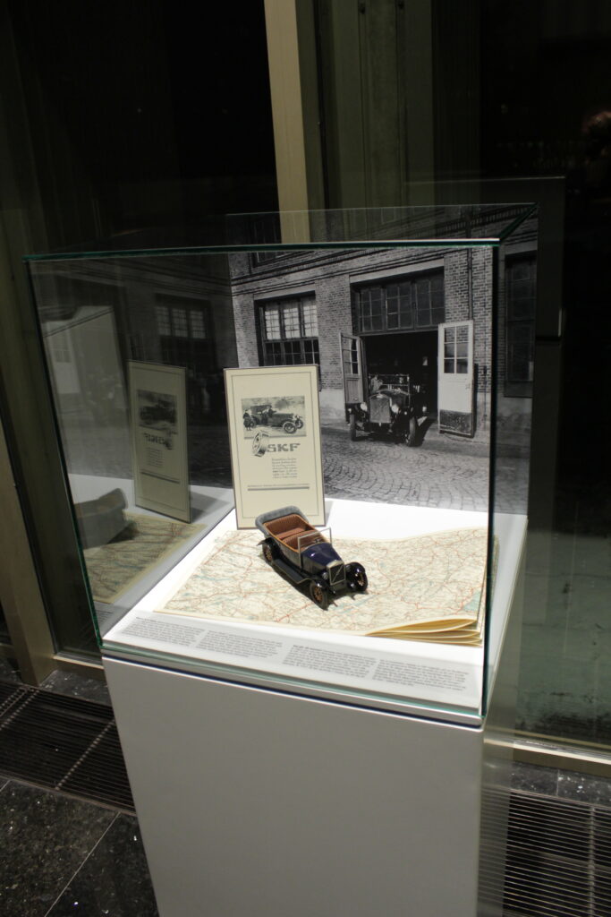 10 kvadratmeter egendesignad modell, samt tillhörande mindre modeller i montrar för SKF:s showroom i Göteborg.
