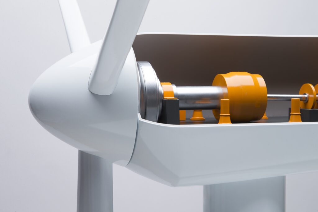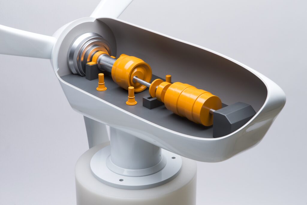 Sprängskissmodell på ett vindkraftverk som visar var smöroljor appliceras. CAD-modellen gjordes utifrån en bild och