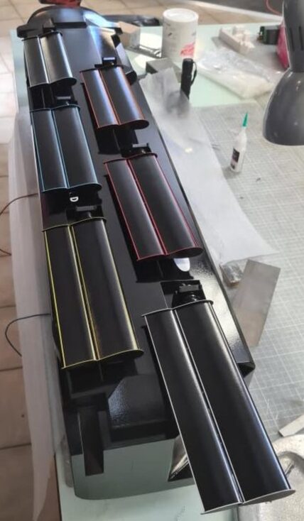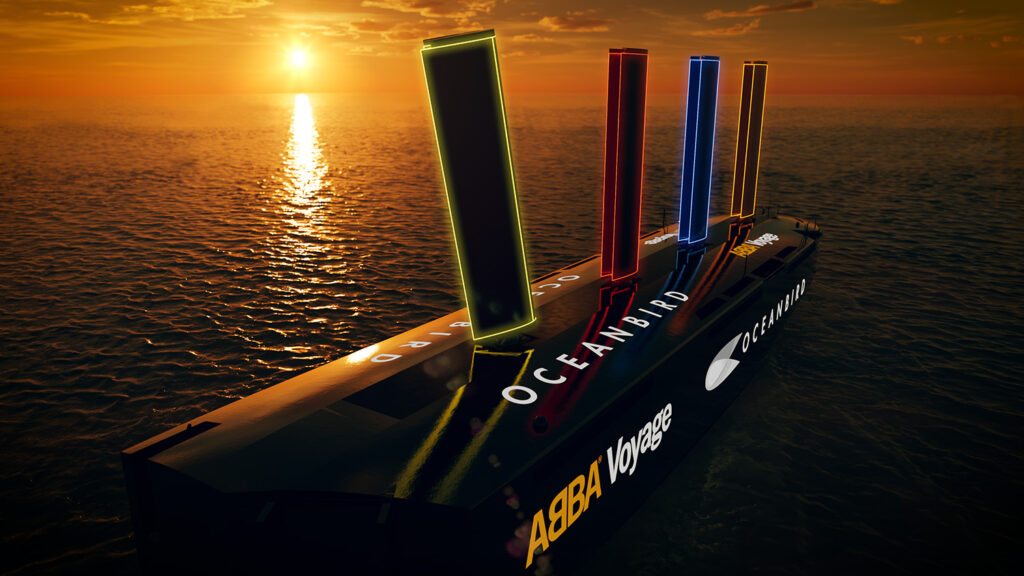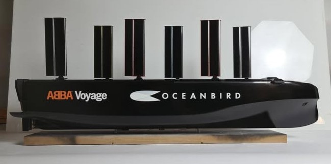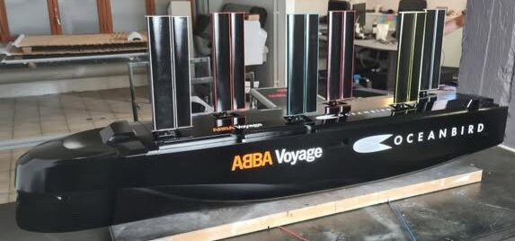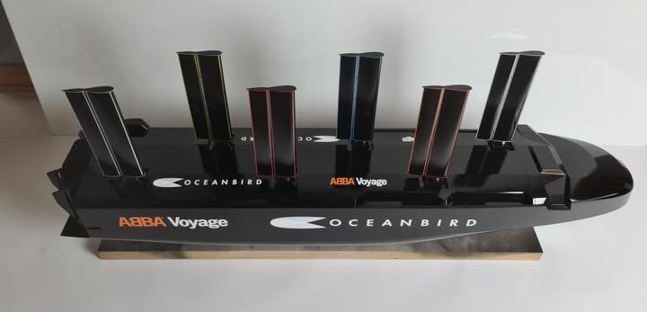 Konceptmodell av ett skepp med fällbara metallsegel.