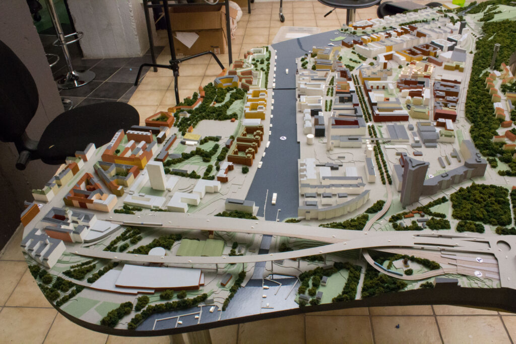 Översiktsmodell över Hammarby sjöstad.