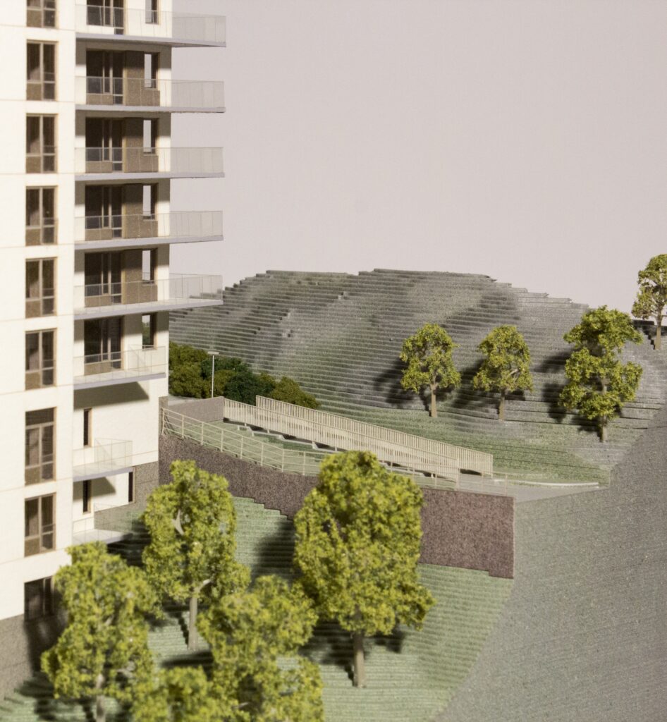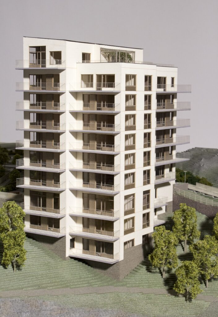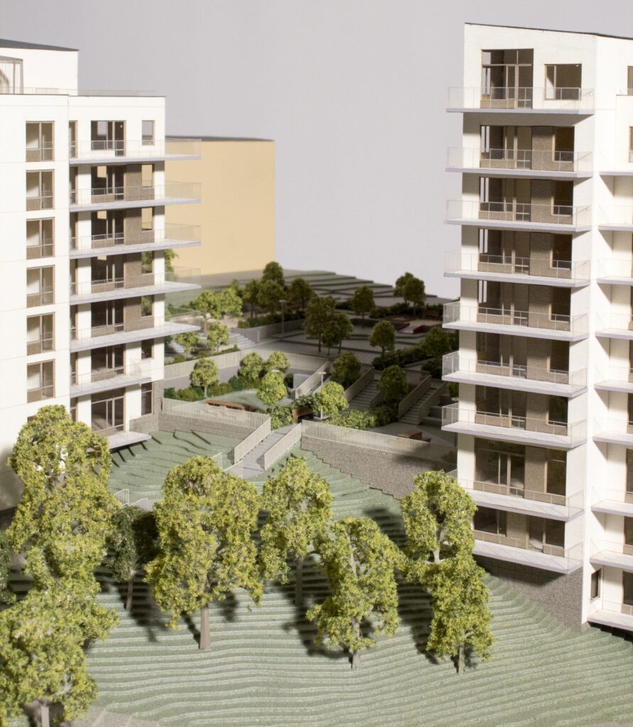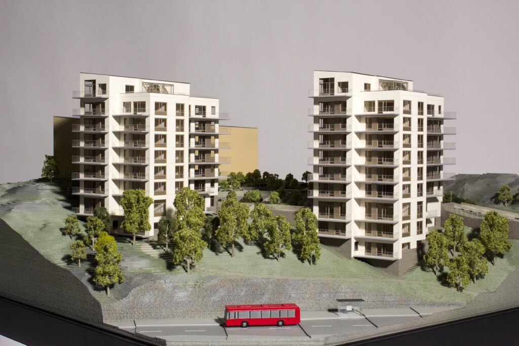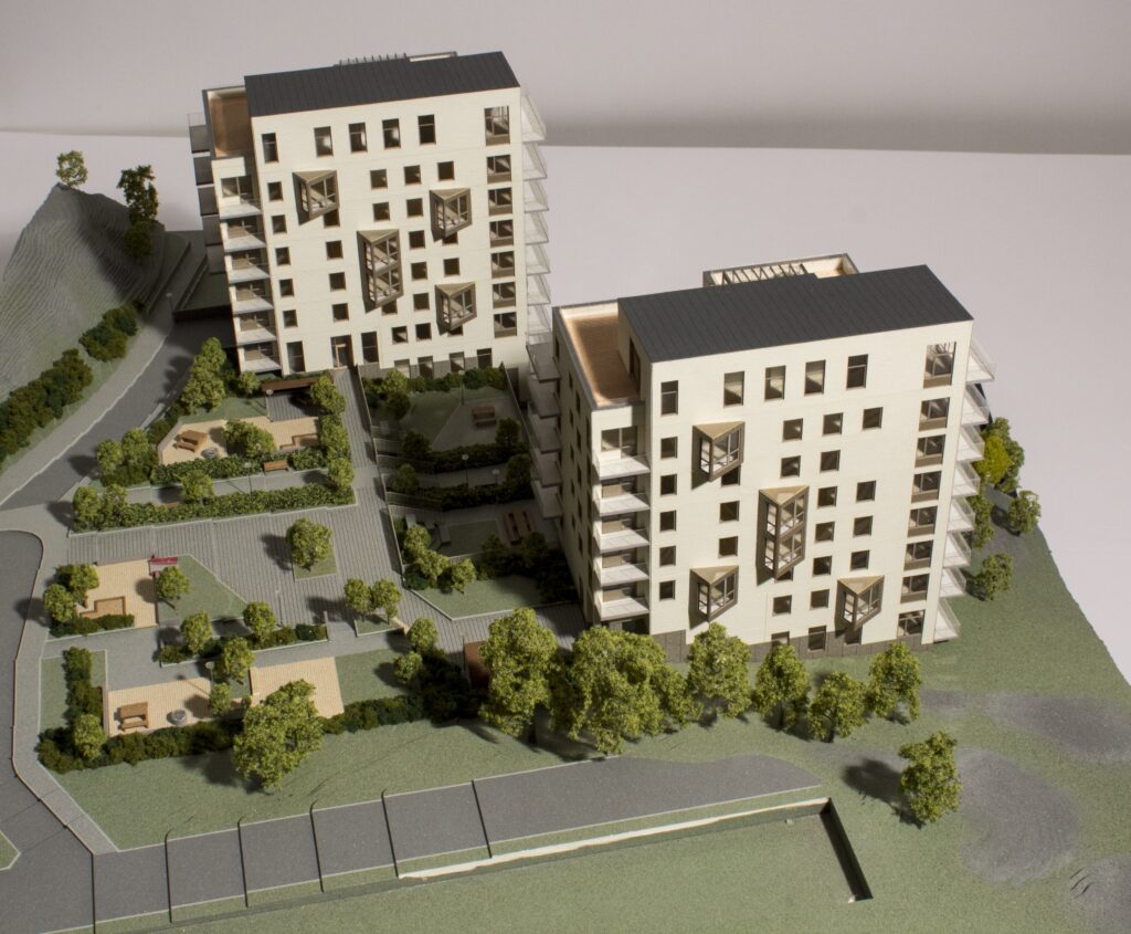 Försäljningsmodell över bostadshus på Kvarnholmen.