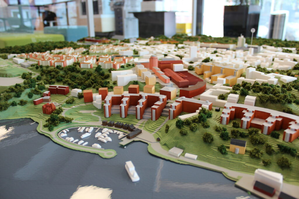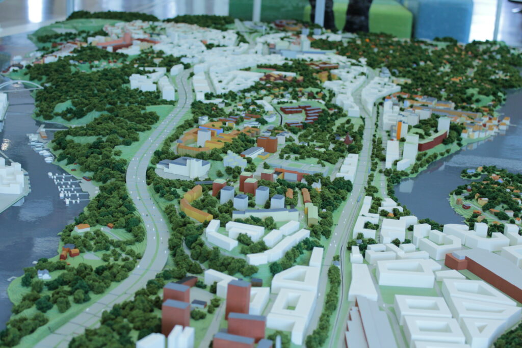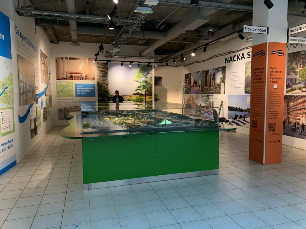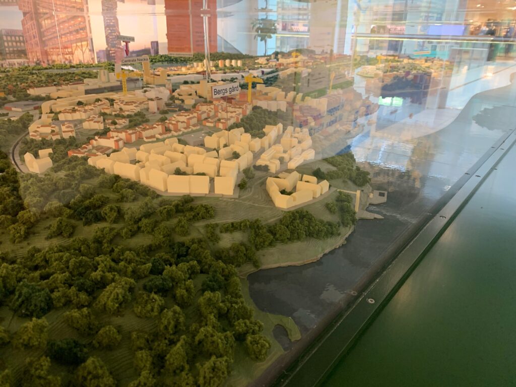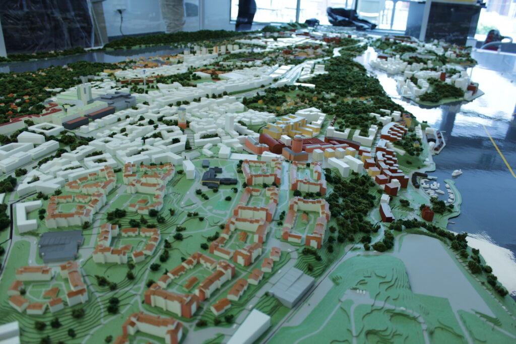 Stadsmodell på 12 kvm över Västra Sicklaön. Modellen är installerad i Nacka Forum.Skala 1:1000Nacka Kommun