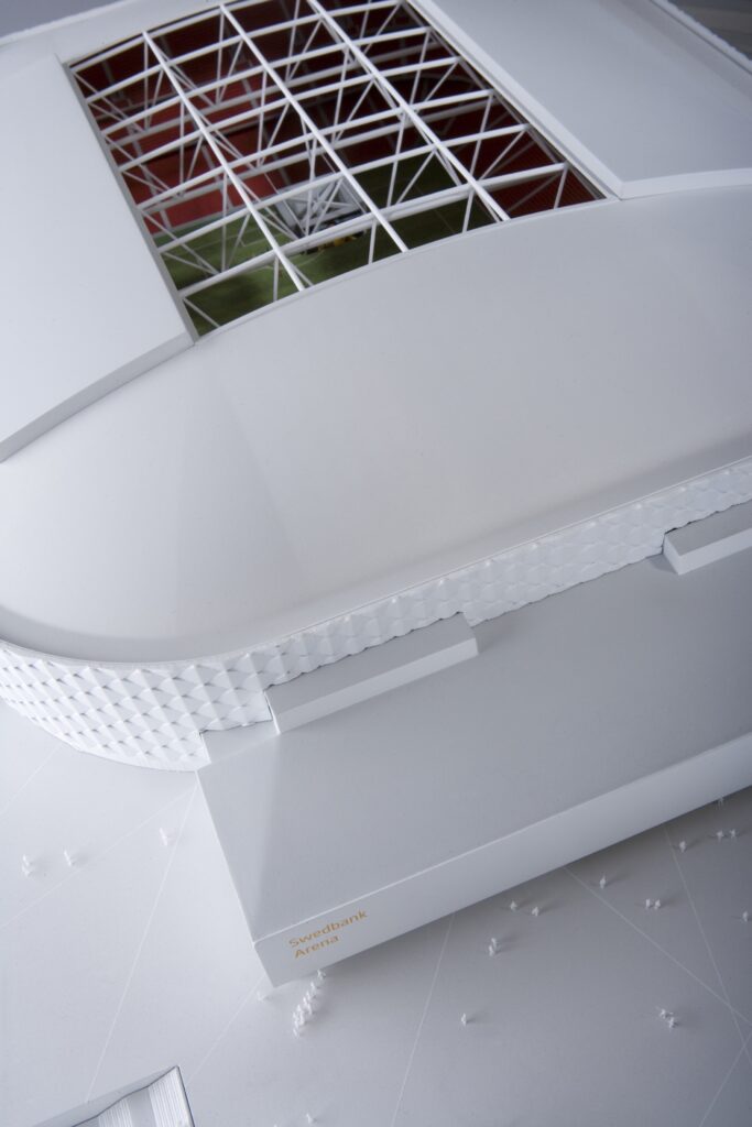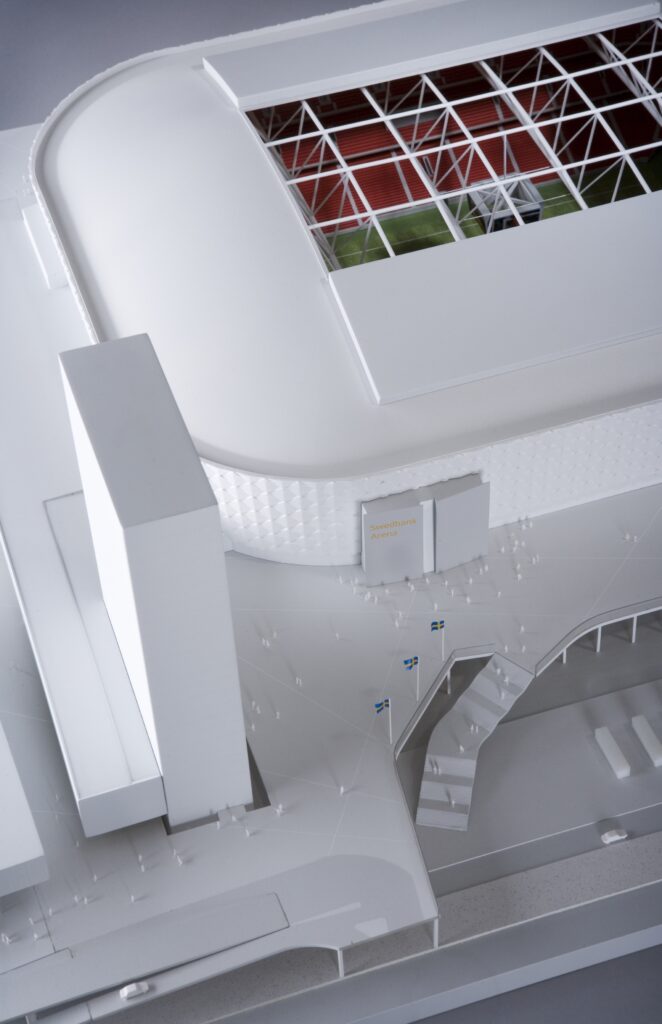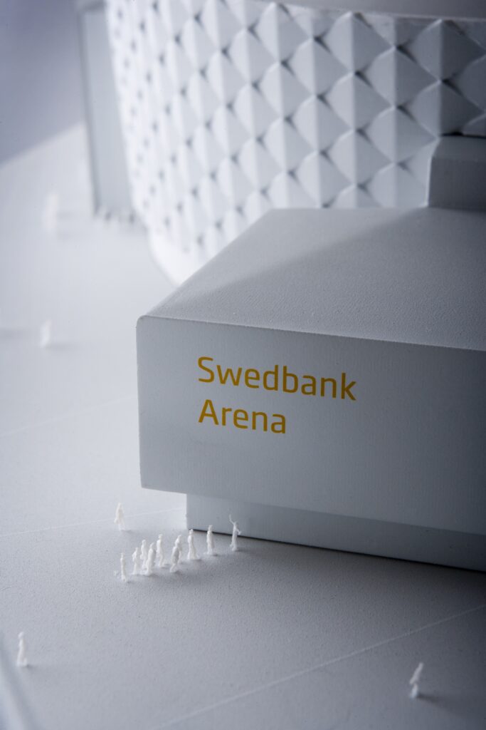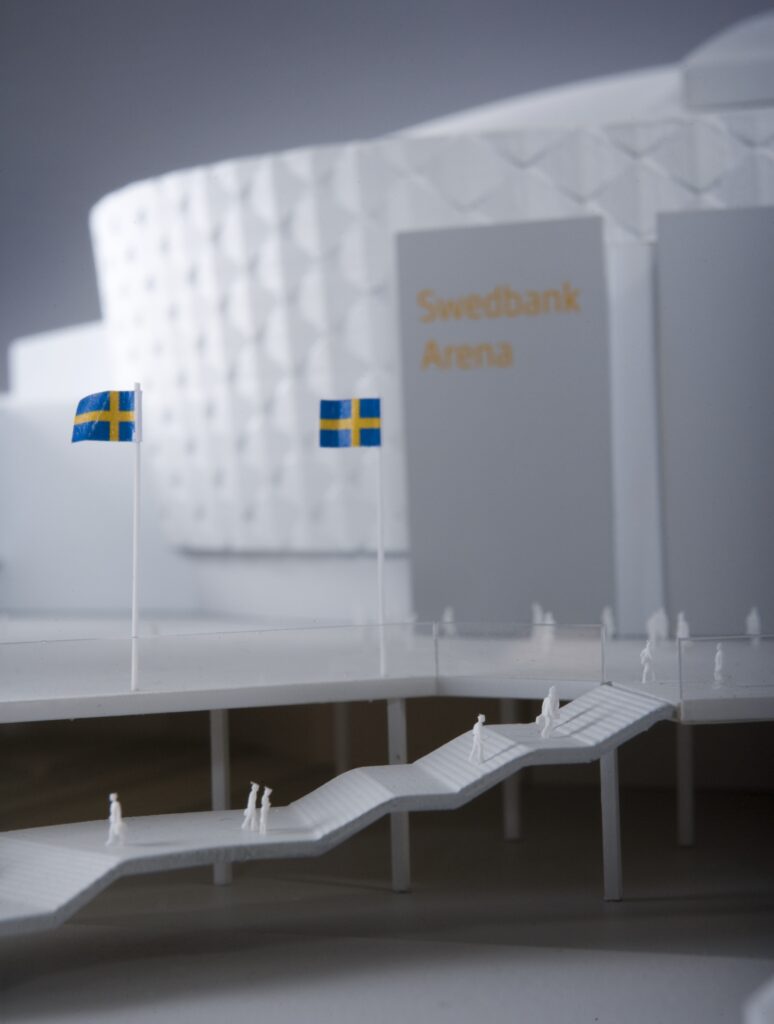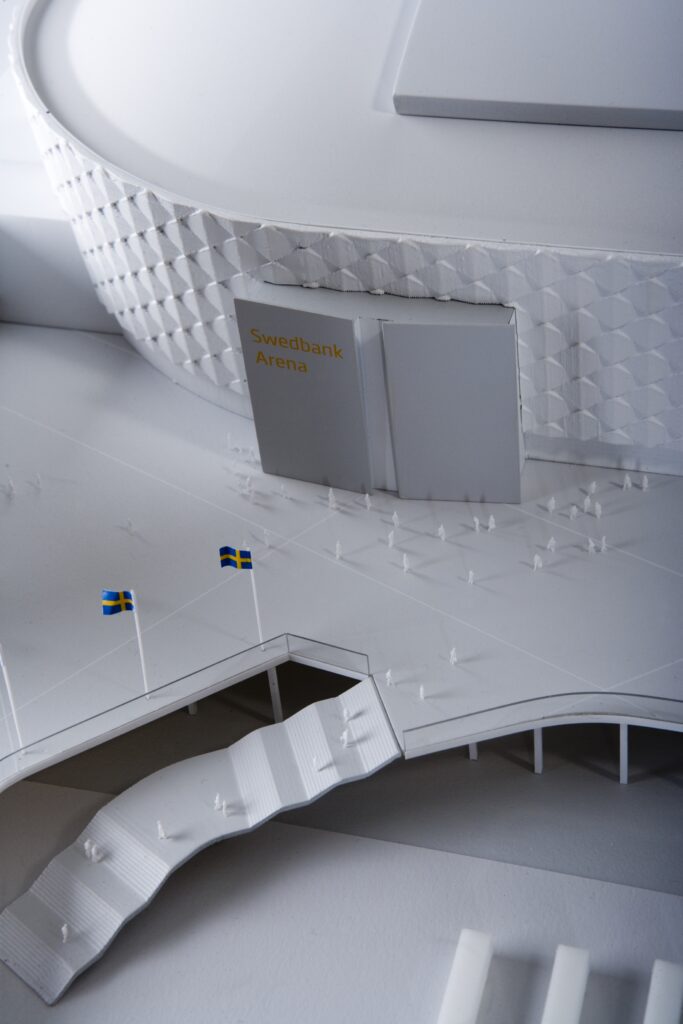 Gestaltningsmodell över arenan i Solna.
