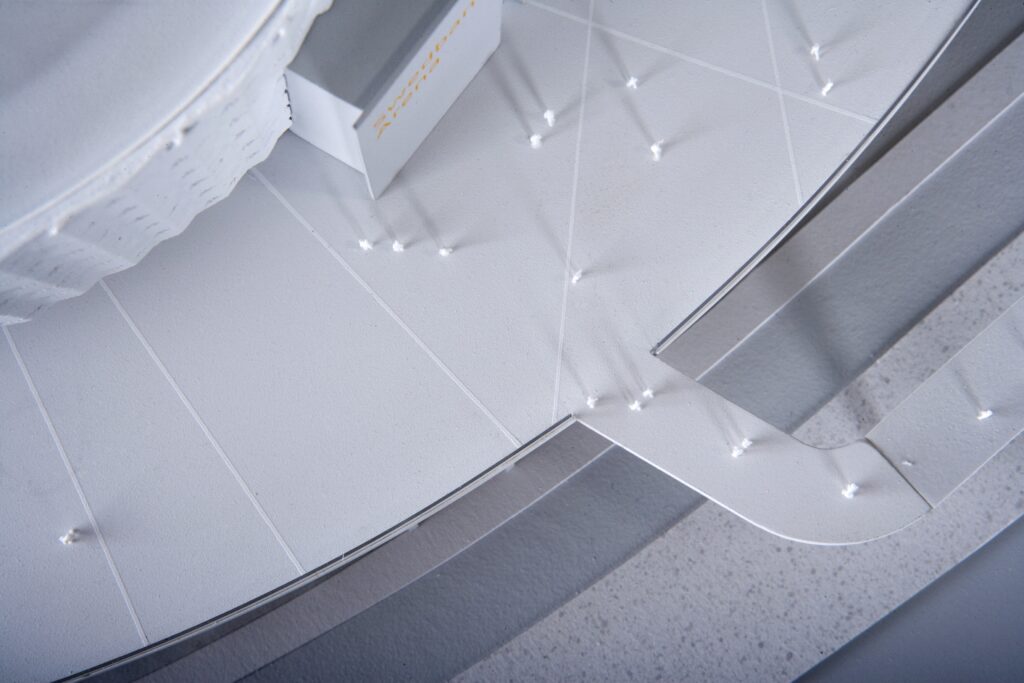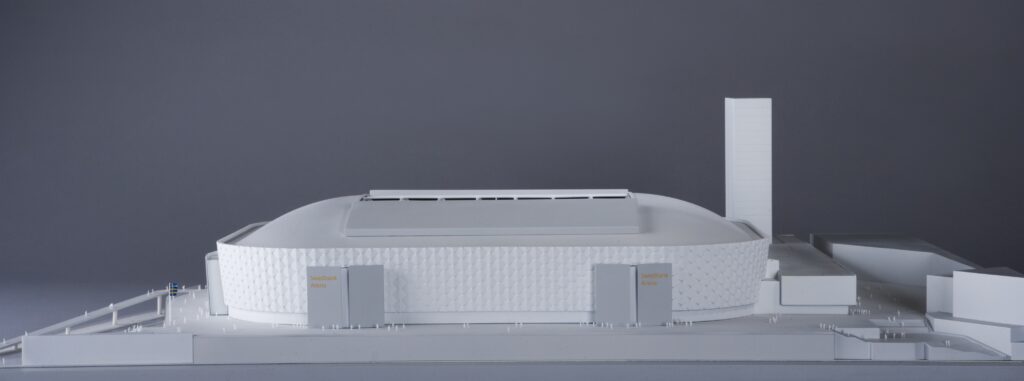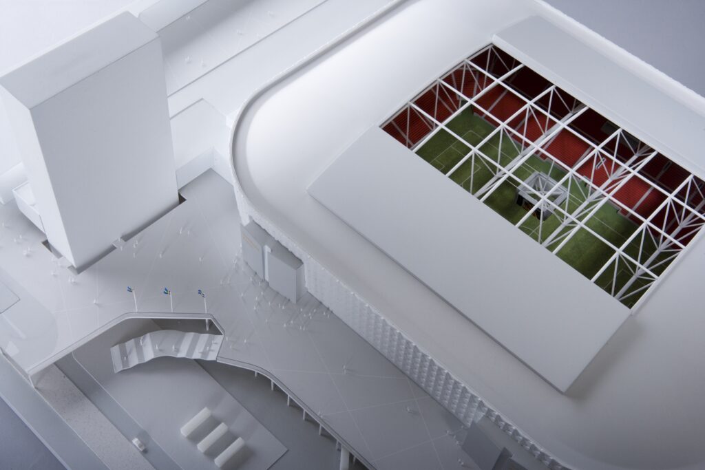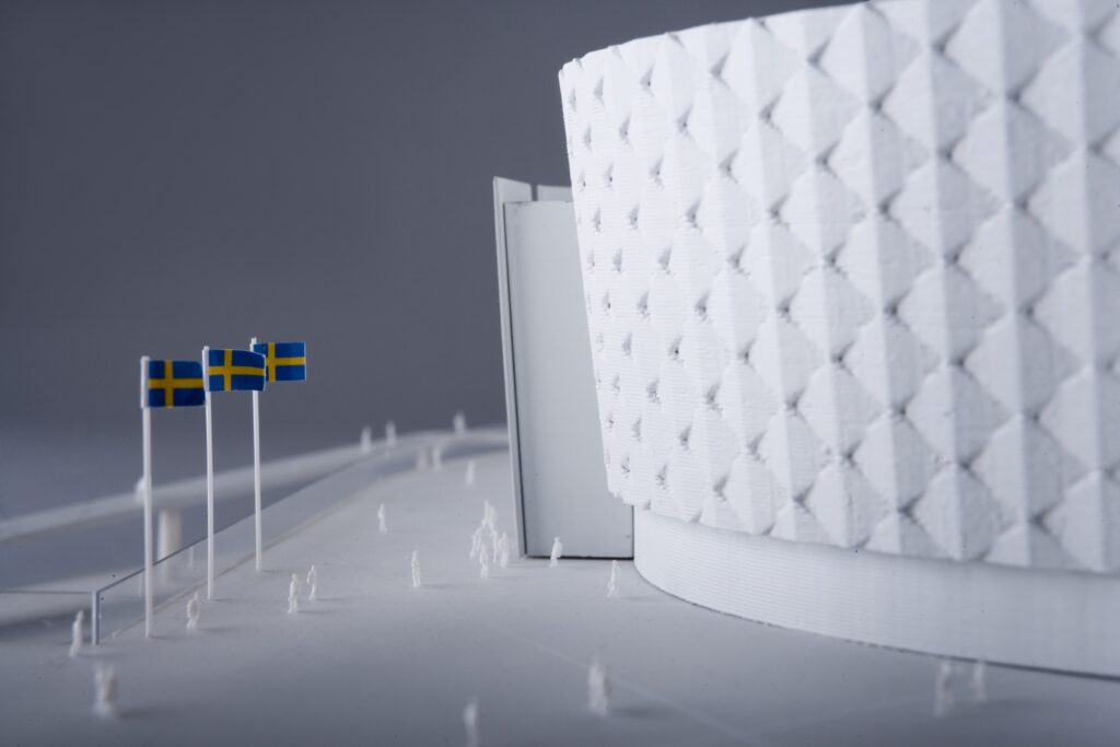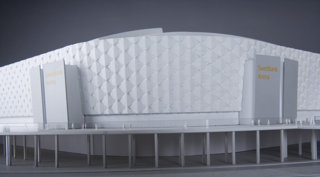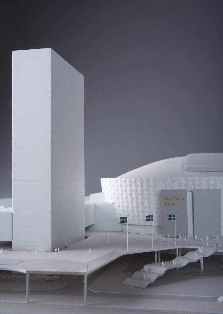 Gestaltningsmodell över arenan i Solna.