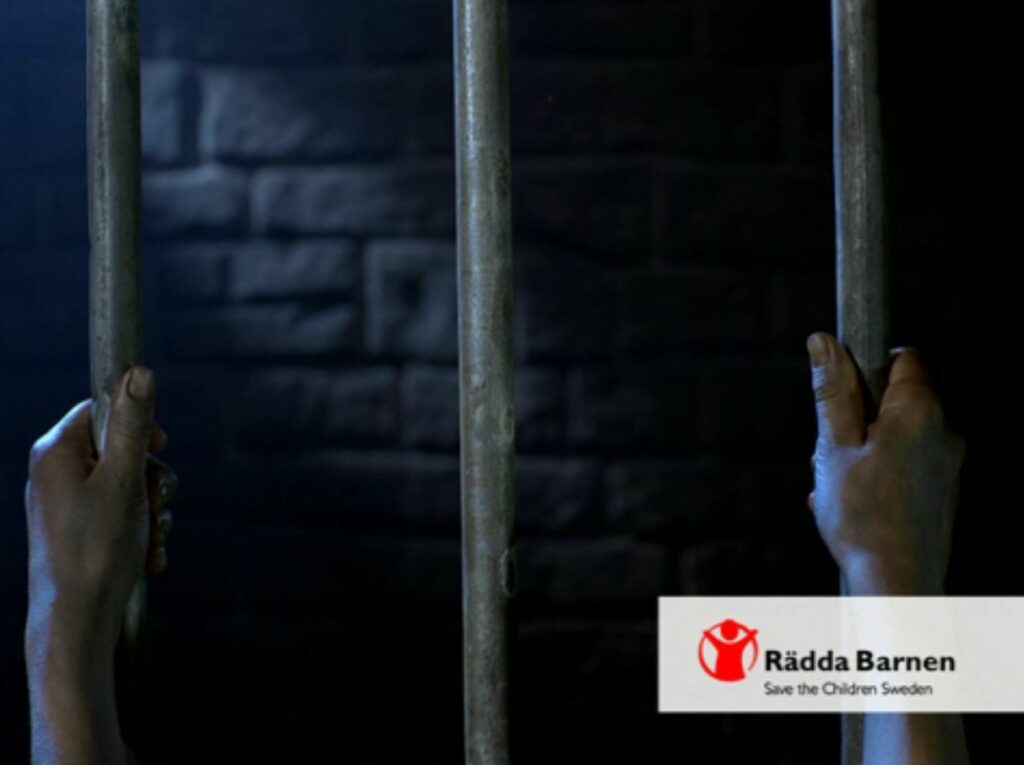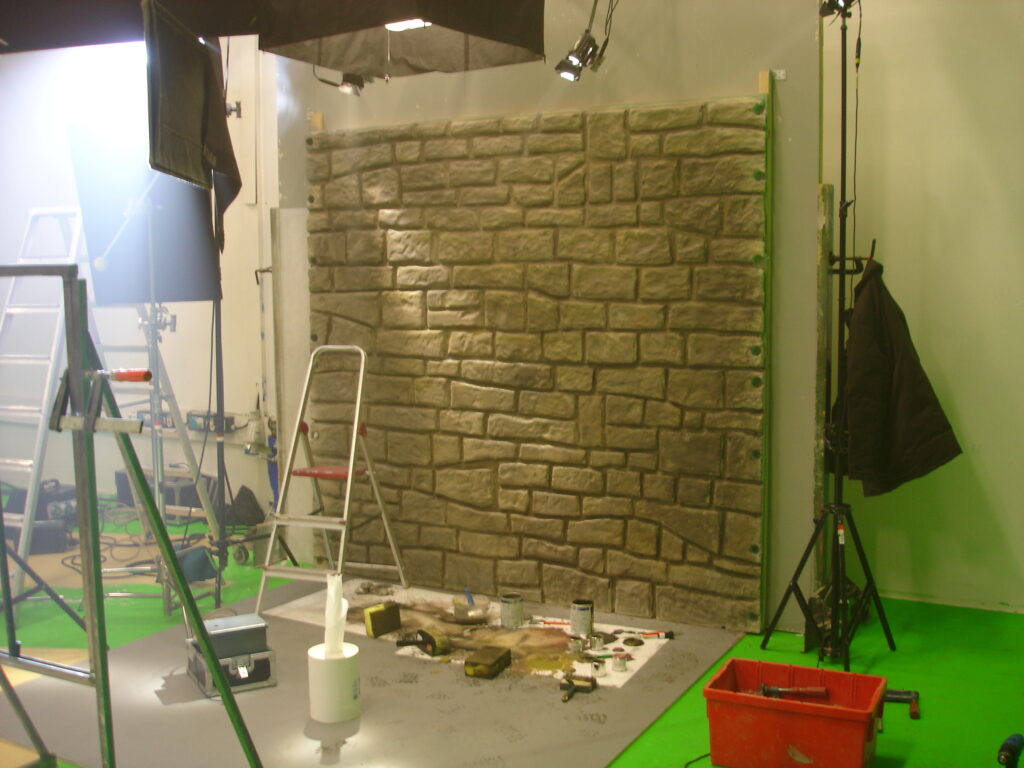 Rekvisita till reklamfilm. Stenväggen byggdes av frigolit som målades och patinerades i olika lager.Cave-sthlm / Rädda barnen