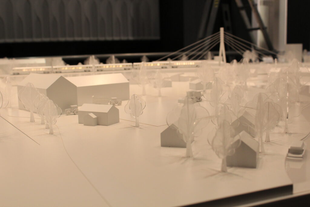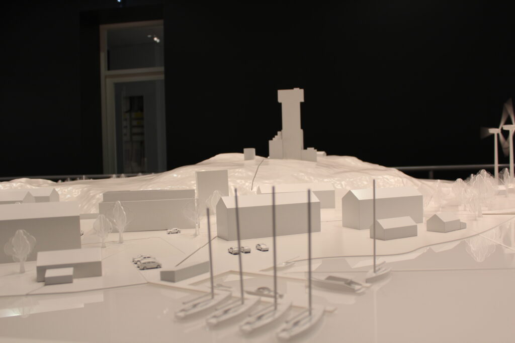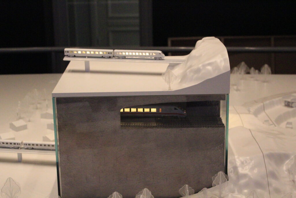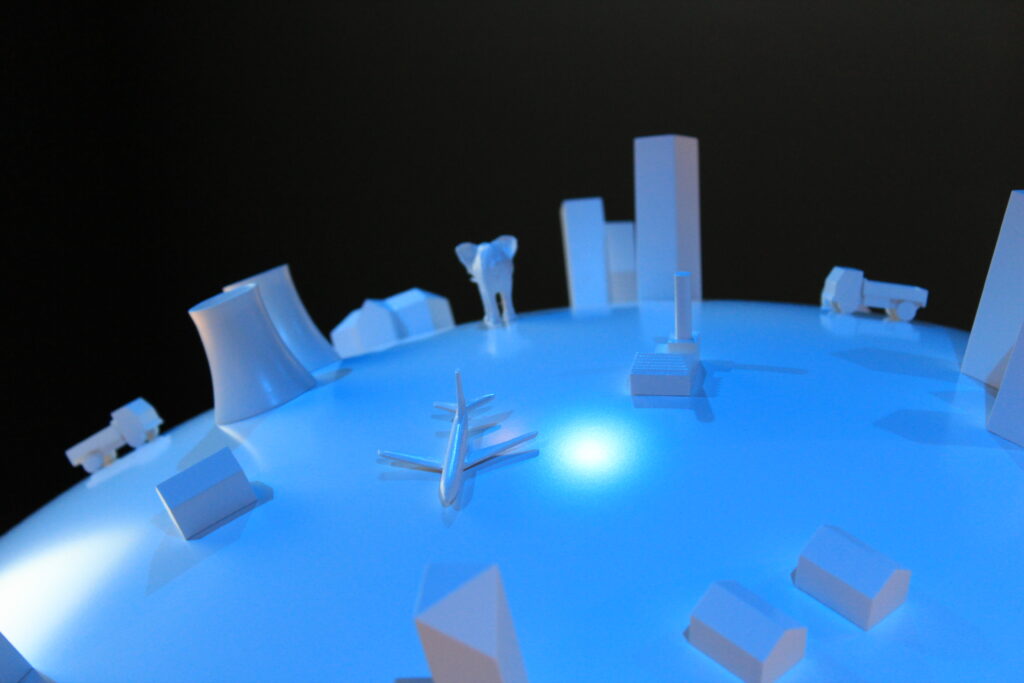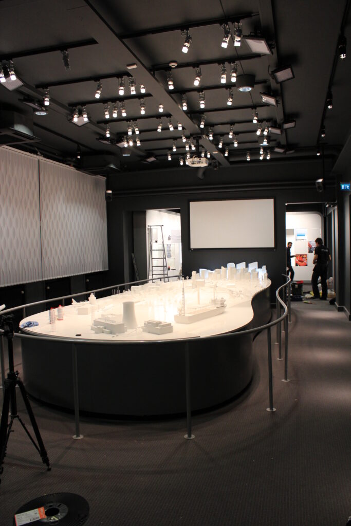 En interaktiv modell med kontrollpanel som styr glaslådor som höjs upp ur bottenplattan. Lådorna visar mer ingående vilka områden Sandvik jobbar inom. Modellen är 20 kvm.Sandvik