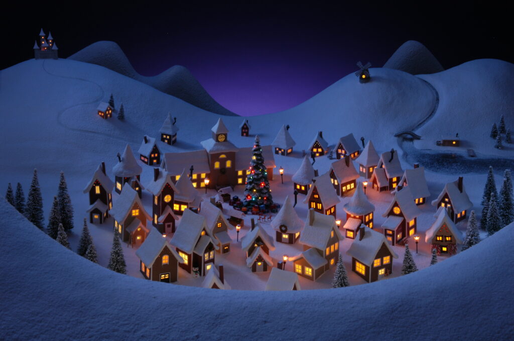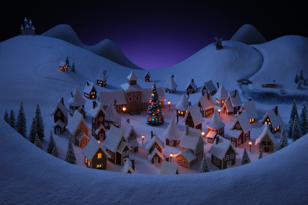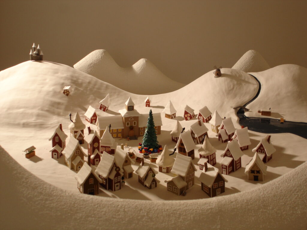 En julkalendermodell med belysning.