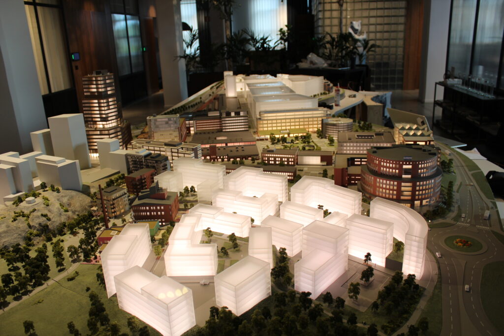 Modell med belysning som styrs via touchskärm.