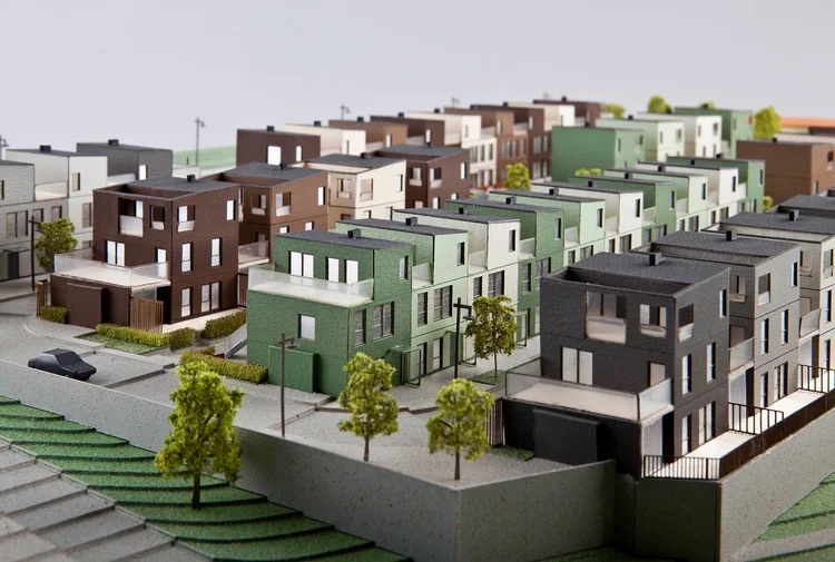 Modell över bostadsområdet Sjöterassen i Fittja.